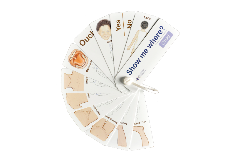 A collection of visual tools that help people with communication difficulties convey the location of pain and discomfort. Available as a printed fan tool, magnetic wall chart and multilingual digital app for smartphones and tablets.