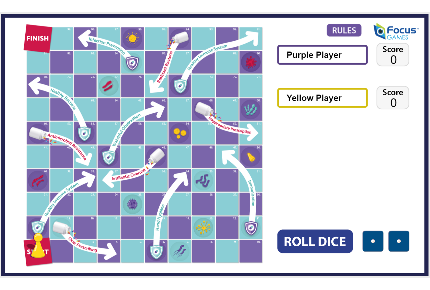 A game-based training tool for groups of healthcare professionals. It encourages players to explore the practicalities of antimicrobial stewardship, (AMS), and the different ways we can all help to reduce antimicrobial resistance, (AMR).