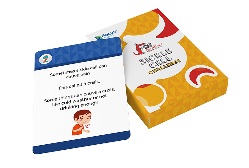 • Roald Dahl Nurse Specialists identified a gap in available resources for educating younger children with sickle cell disease about what their disease means and how to manage it. A group of Roald Dahl Nurse Specialists have worked in collaboration with Focus Games Ltd to create a family of serious educational games to help younger children, and those around them, understand and manage sickle cell. We have developed a board game, online game and card game to assist with education for children aged 6-9 years old about keeping healthy, how medications work and how to avoid known triggers for a sickle cell crisis.
