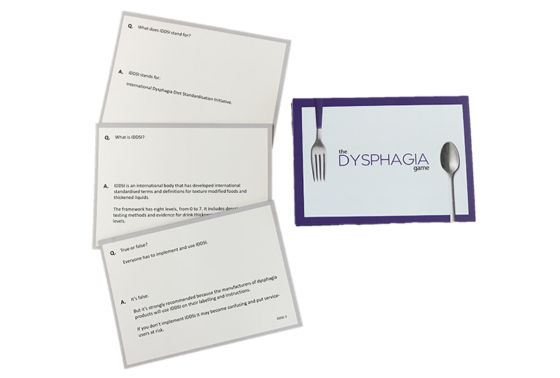 This pack of IDDSI cards will help you implement IDDSI in your organisation and train your staff effectively it can be combined with the cards in your existing Dysphagia Game