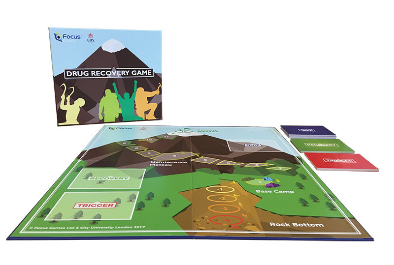 Players compete to reach the top of “Recovery Mountain”, answering and discussing questions to improve their drug and alcohol knowledge. Their journey to achieve recovery is boosted or hindered by “Recovery” and “Trigger” cards that present situations which might trigger a relapse or lead to a positive change in behaviour.