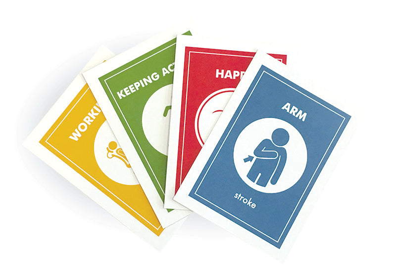 Stroke Touchpoint Cards are designed specifically for stroke patients, with a simple design to aid cognition. They feature common issues important in stroke aftercare, helping facilitate conversations about: