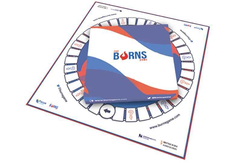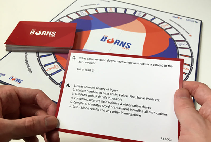 • The Burns Game is a team game which allows conversations to develop around best practice in initial burn care. These discussions allow players to share knowledge, learn from each other and improve the way they work with burn patients.