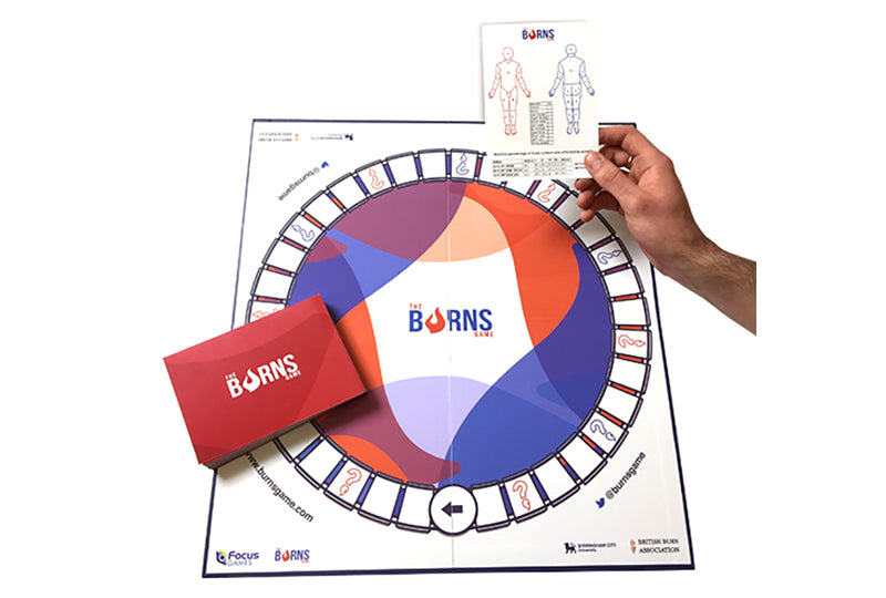 The game increases awareness and delivers knowledge & skills around burn injury first aid, assessment and initial treatment, for any professional involved in the initial management of burn injury patients. The Burns Game delivers the required knowledge in an engaging board game format.