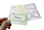 • Extention pack consisting of 20 cards ( 8 x Topic, 6 x Group, 3 x Bonus and 3 room size cards) Write on cards using a pen / sharpie or printed label (80mm x 30mm Labels) labels not supplied.
