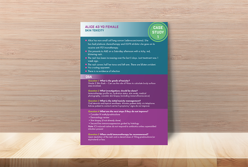 However, supporting staff to implement news ways of working is challenging. There is a need for engaging and effective educational resources, that address this subject. It focuses on the recognition, investigation and management of immune related adverse events, (irAEs), secondary to checkpoint inhibitor therapy. The game encourages players to discuss and answer a series of questions, allowing them to acquire knowledge and understanding, share ideas and learn from each other. Peer discussions are what helps players to enhance their learning.