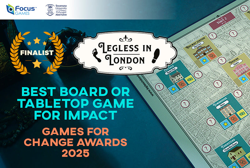 Disability and disability history are underrepresented in culture—and especially in tabletop gaming. Furthermore, many mainstream tabletop games present accessibility problems for disabled players (for example, wordy and/or complex rules, which can be troublesome for neurodivergent users). Legless in London attempts to address both representational and accessibility issues.