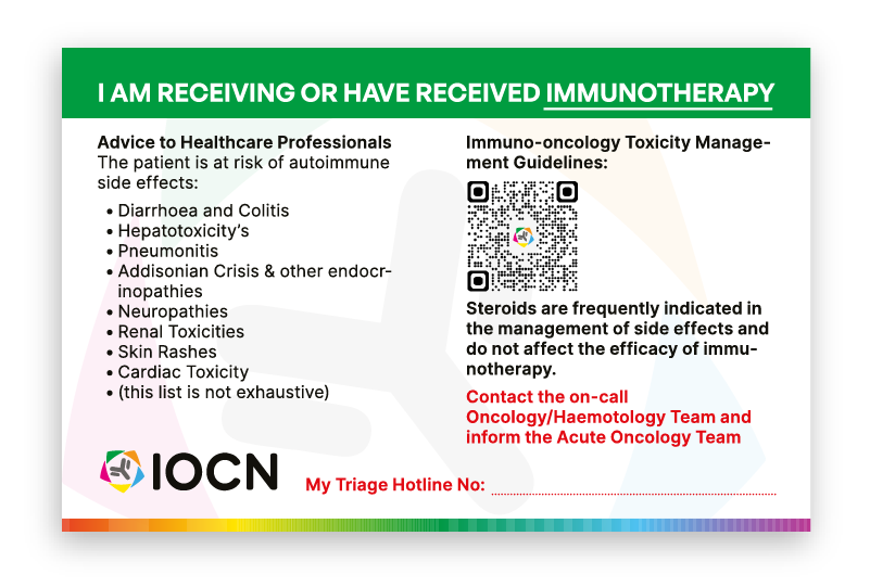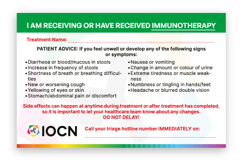 • It covers the fundamentals of immunotherapy, how treatment is administered, what patients should expect throughout their care pathway, and clear guidance on recognising and responding to immune-related side effects.